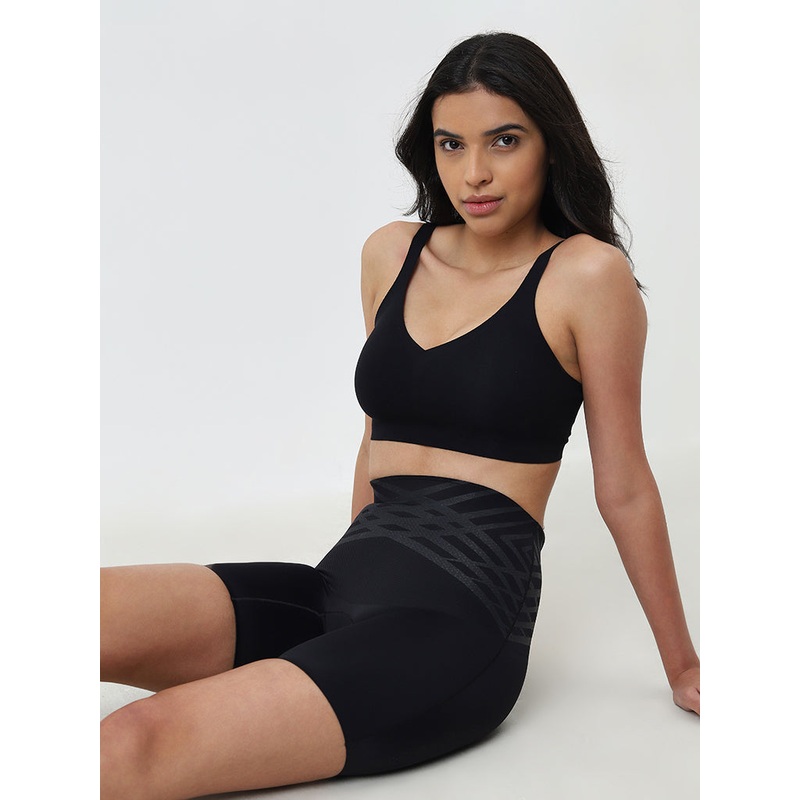 These black shorts by Wunderlove are crafted with soft and stretchable fabric, offering a perfectly sculpted fit. The high-rise bottom wear boasts a smooth waistband for a comfortable fit.