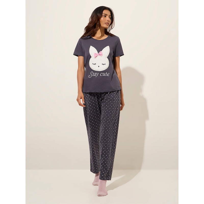 Wunderlove Charcoal Printed Cotton Pyjamas Set In A Bag