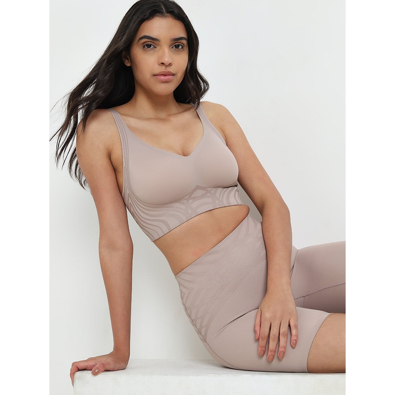 This light mauve bra from Wunderlove is designed with abstract patterns. Created from a breathable fabric for all-day comfort, it features padded cups that give you a subtle life, while the adjustable straps ensure added flexibility.