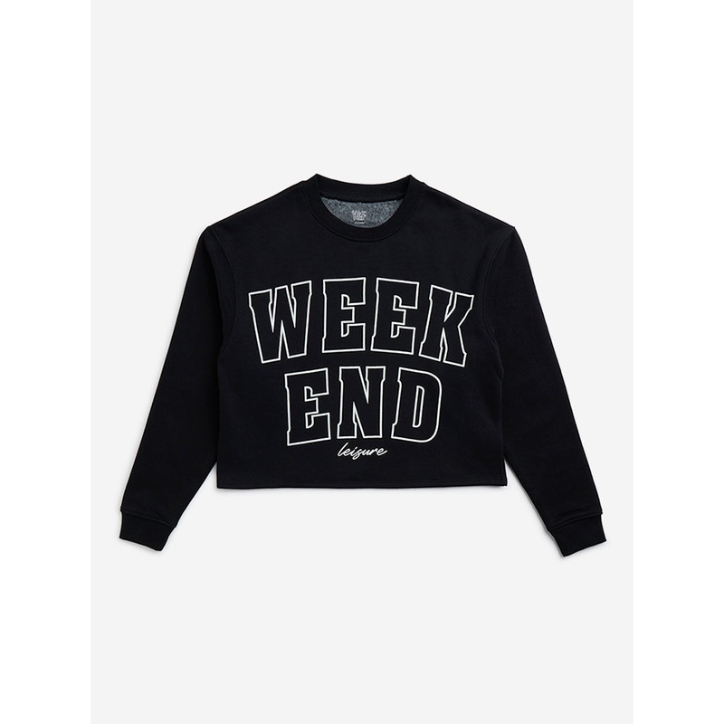 Y&F Kids Black Text Printed Cotton-Blend Sweatshirt