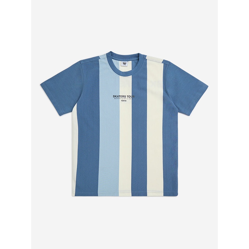 Y&F Kids Blue Colour-Blocked Cotton-Blend T-Shirt