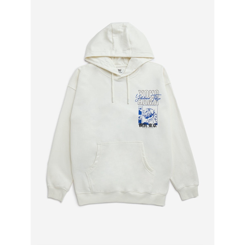 Give your kids some cool style points with this off-white hoodie from Y&F Kids. Designed with Anime-inspired prints, the lightweight garment is complete with a hood and full sleeves. The kangaroo pocket helps store essentials.