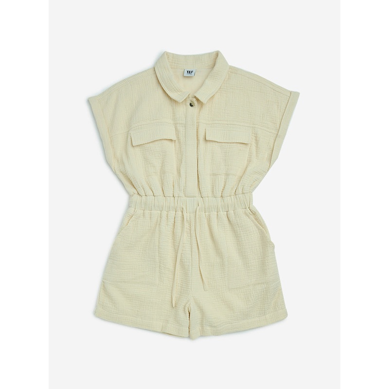 Y&F Kids Off-White Crinkle-Textured Cotton Playsuit