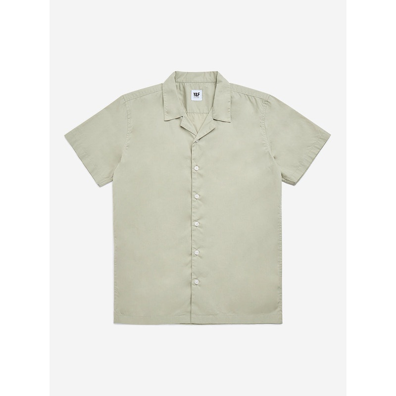 This sage shirt from Y&F Kids is sculpted in a resort-fit structure. Made from pure-cotton, it includes a camp collar that extends to a button placket and lends a playful finish.