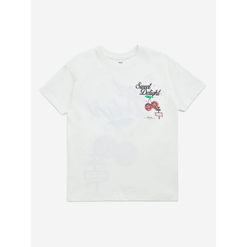 Y&F Kids White Text Design Cotton T-Shirt LBNU253622055473
