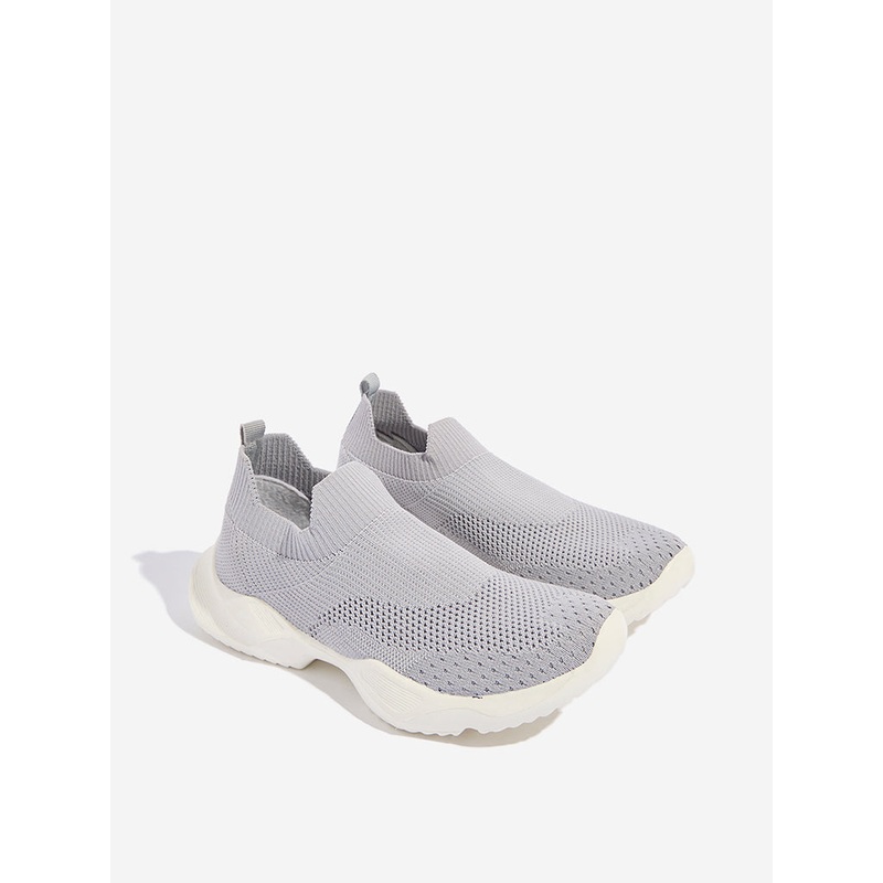 Yellow presents these grey shoes featuring a soft and stretchable exterior for a comfortable fit. The easy slip-on design ensures effortless wear, while the soft insole adds comfort. The high-sole outsole provides excellent grip and traction, making them perfect for all-day wear.
